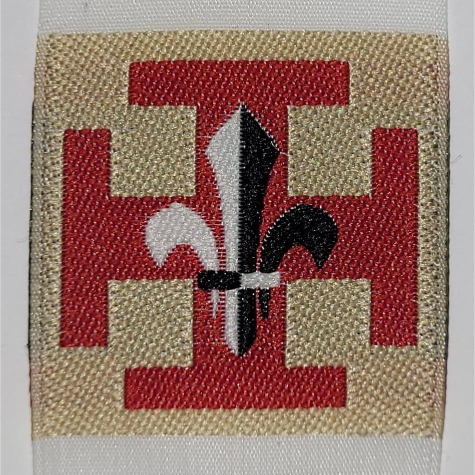 Insigne tissé de promesse pour les Scouts, ainsi que pour les Routiers et chef de groupe sur la chemise beige.