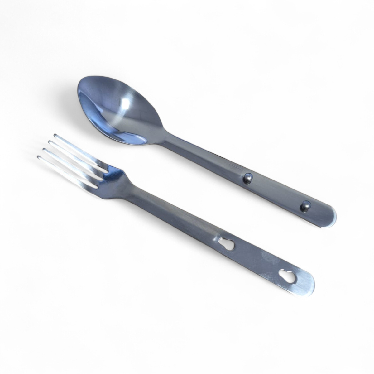 Couvert inox 2 pièces, une fourchette et une cuillère avec attache.